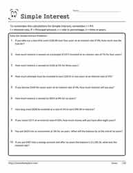 Download Simple Interest Coloring Worksheet Pics Help your homeschooler learn how to calculate basic interest with these worksheets. These worksheets can be used in conjunction with the videos and quizzes of this website. Printable worksheets are the key of the preschool education.